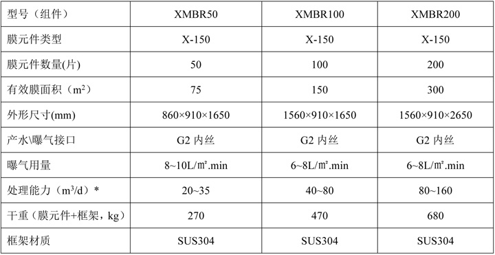*指生活污水;工业废水根据水质情况不同,建议试验后再确定通量取值大小。